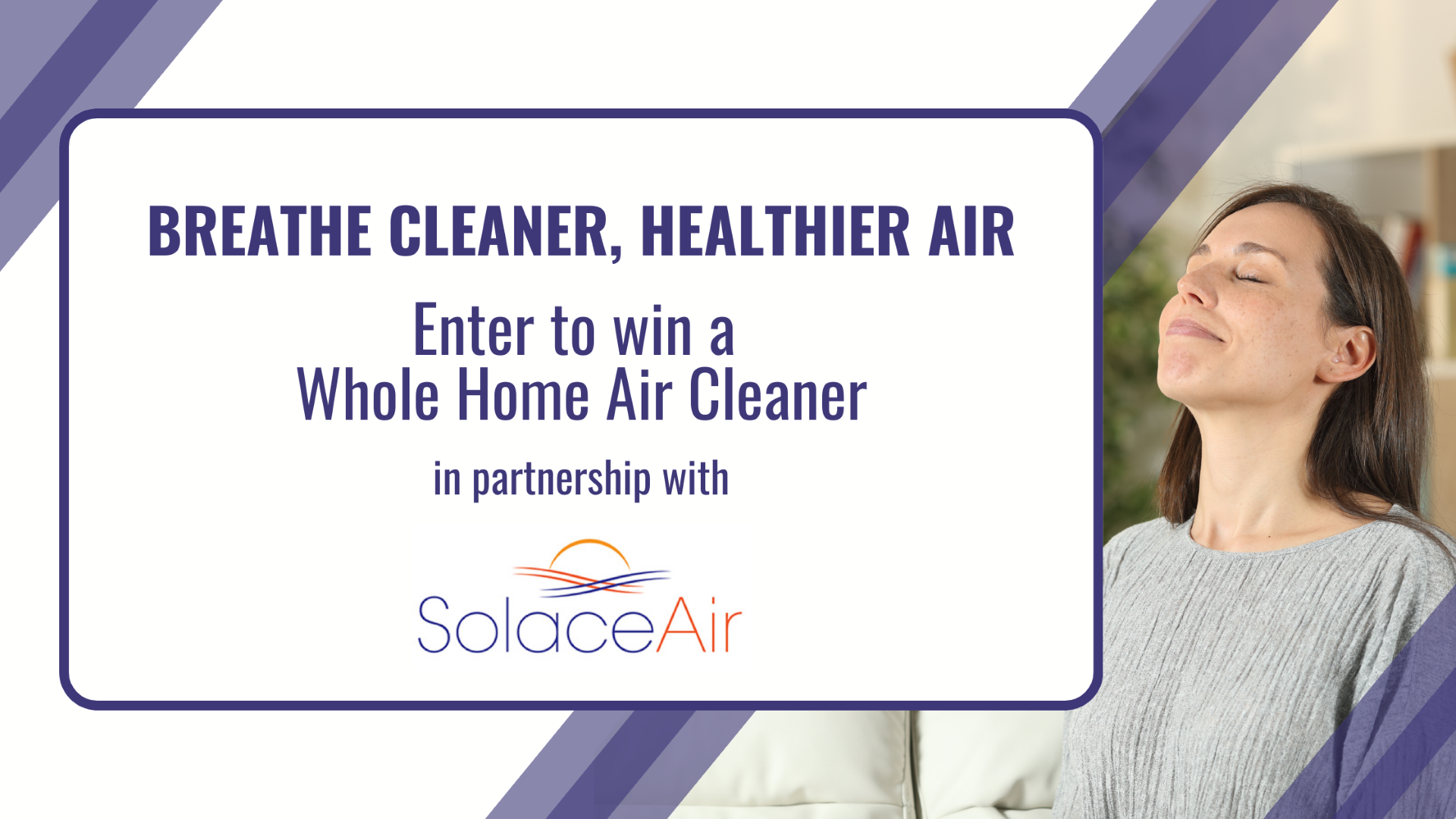 Your home should be a safe haven, free from allergens, dust, and airborne pollutants. We’ve partnered with SolaceAir to provide a SolaceAir Air Cleaner to help you enjoy cleaner, healthier air every day. For a limited time, you have the chance to win one for FREE!